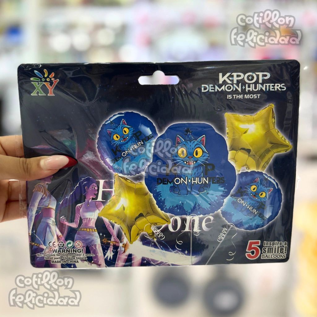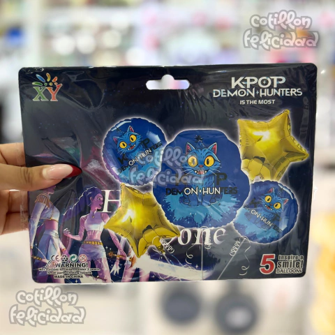 Set de globos metalizados ideal para decoración de cumpleaños y fiestas temáticas K-Pop Demon Hunters – “Gato Derpy”. Perfecto para ambientar eventos con un diseño llamativo y moderno.